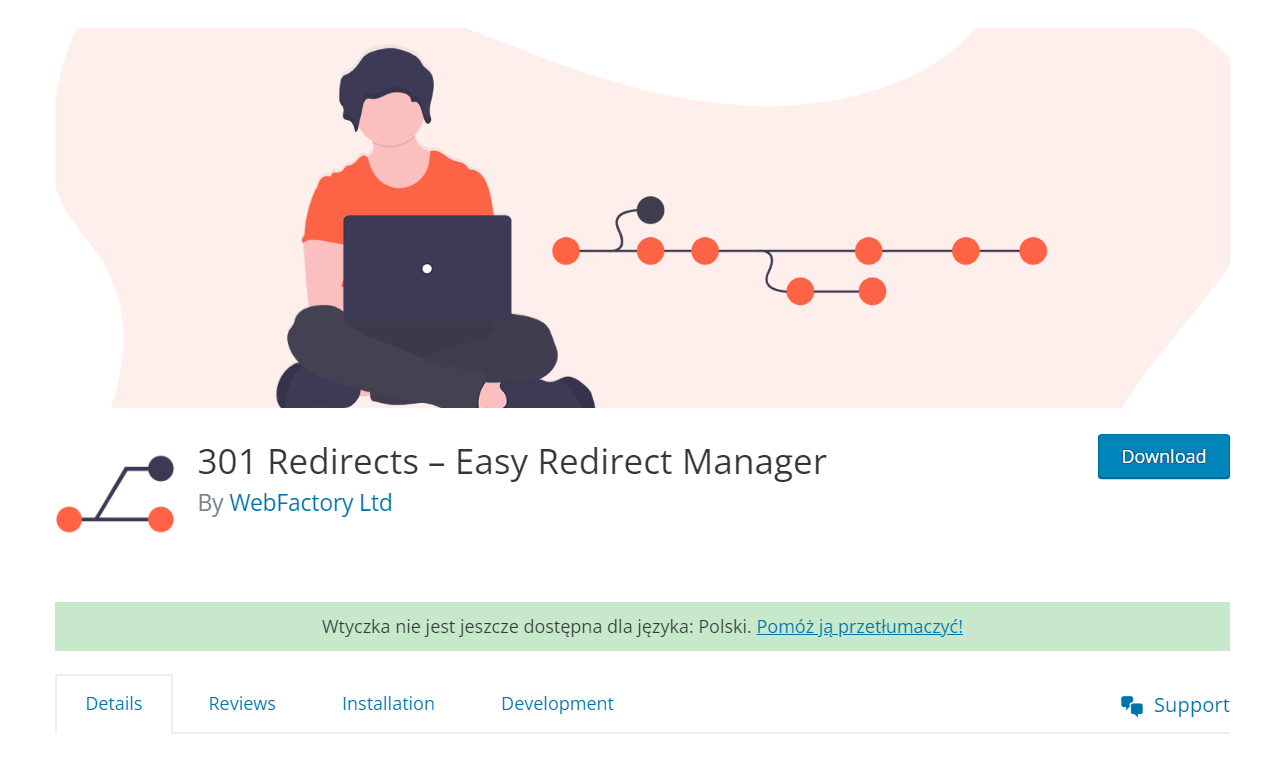 Link do pobrania wtyczki: https://wordpress.org/plugins/redirection/