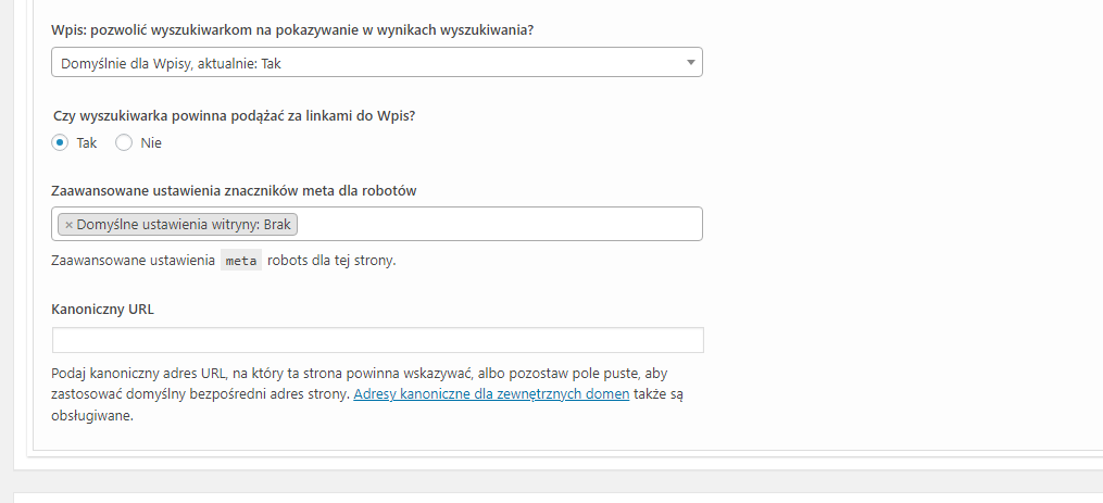 Opcje meta wpisu